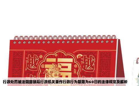 在行政法领域,当行政处罚被法院撤销后,行政机关需要重新进行行政行为的情况并不鲜见。为了规范这一过程,我国相关法律法规规定了行政机关重作行政行为的期限。其中,最为常见的规定便是重作行政行为的期限为60日。本文将围绕这一规定进行详细解析。行政处罚被撤销后的重作行政行为当行政处罚因某种原因被法院撤销后...